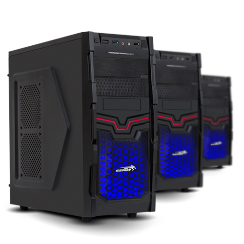 The Sentey Cyberia comes with a 120mm front Blue LED fan and a rear 80mm black fan to displace and exhaust the hot air generated within the chassis. In total, the case allows up to 4 fans to be installed, a frontal fan, 2 side fans, and one bottom fan, to complete the cooling system alongside the included rear exhaust fan.